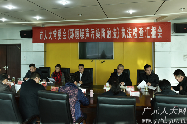 在召开的汇报会上,执法检查组听取了市政府贯彻实施《环境噪声污染防治法》情况汇报,并提出意见和建议。田中文对《环境噪声污染防治法》贯彻实施工作给予充分肯定,他指出,生态环境是广元最大的优势,“生态牌”是广元永远的主题,要深化认识,把握机遇,进一步增强做好噪声污染防治工作的责任感和紧迫感,不断满足公众对环境的要求与期盼。