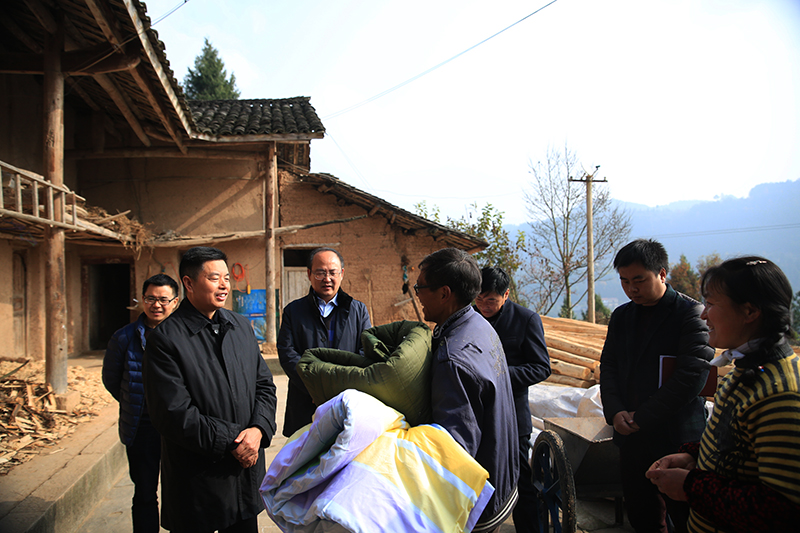 田中文副主任步行深入宝顶村张成之、张轩之等贫困户家中,详细询问他们生产生活情况和实际困难为他送上过冬用的棉衣和棉被,田中文与他们拉家常,嘘寒问暖,详细了解他们医疗救助、就业增收等情况。