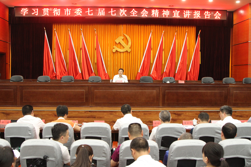 宣讲报告会上,邓光志重点从“充分认识市委七届七次全会的重要意义”、“准确把握市委七届七次全会所取得的重大成果”、“深刻领会七届七次全会对推动治蜀兴川广元实践再上新台阶的重大部署”三个方面,向与会人员宣讲和解读了市委全会精神。