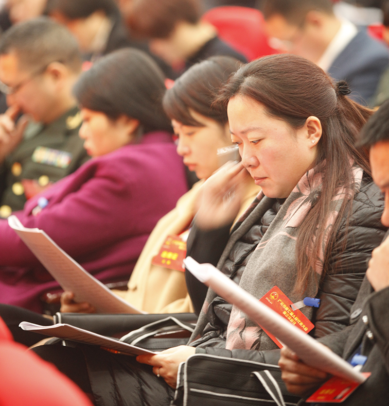 代表们在认真听着报告