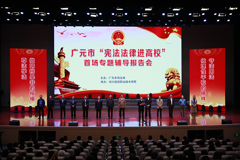 4月18日,“宪法法律进高校”动员部署暨首场报告会在四川信息职业技术学院举行。此次活动旨在使宪法法律观念愈加深入校园,教育引导全体师生自觉遵守宪法和法律法规,促进青少年学生健康成长、全面发展。市委常委、政法委书记冯安富,市人大常委会副主任田中文,市政协副主席韩跃明出席活动。