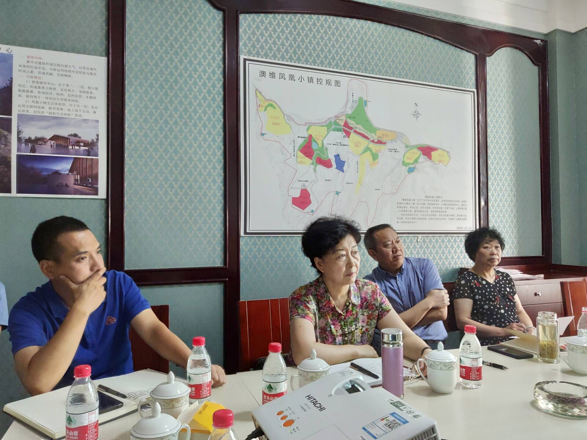 在鲲鹏小镇项目部,赵爱武详细听取了该项目规划、用地、征拆以及配套设施建设等工作情况汇报。鲲鹏小镇项目位于龙潭乡建设村、和平村、元山村,总投资50亿元,主要打造集居住、游玩、颐养身心一体的复合型、全业态康养小镇,目前小镇游客中心、中央公园、康养示范区、农旅公园、花卉博览园等项目建设正全面推进。