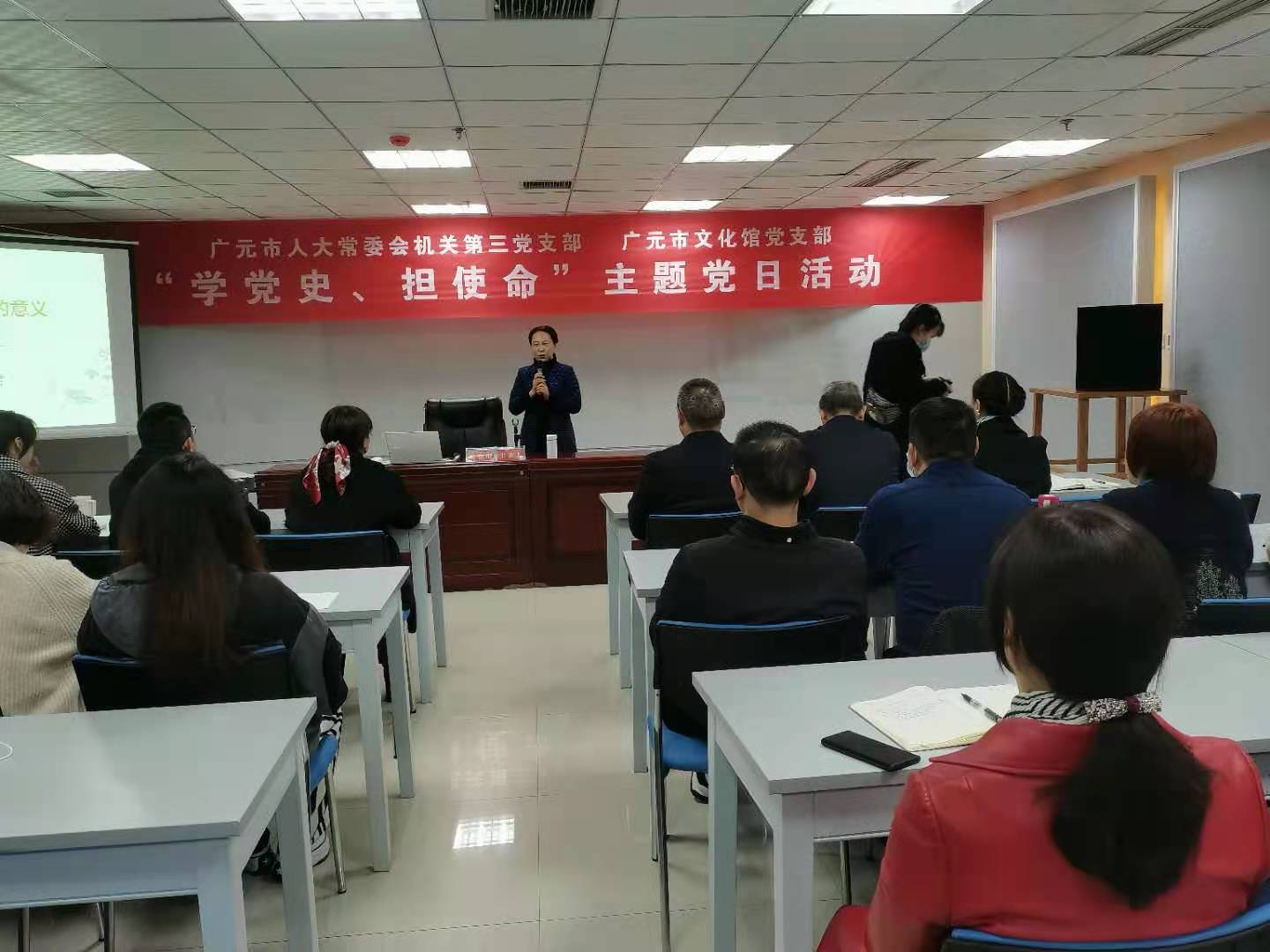 3月19日,市人大常委会机关第三党支部与市文化馆党支部在市文化艺术中心联合开展了“学党史、担使命——共话人生的意义”主题党日活动。 主题党日活动中,全体党员聆听了市人大常委会党组副书记、一级巡视员苟英明所作的《活出生命的意义》专题讲座,讲座内容分为什么是生命、如何发现生命的意义和怎样才能活出生命的意义3个部分。全体党员讨论了人生的意义,参观了广元市文化馆和博物馆。全体党员纷纷表示,要以党史教育为契机,进一步增强责任感和使命感,履职尽责,甘于奉献,求真务实干好本职工作。(机关第三党支部)