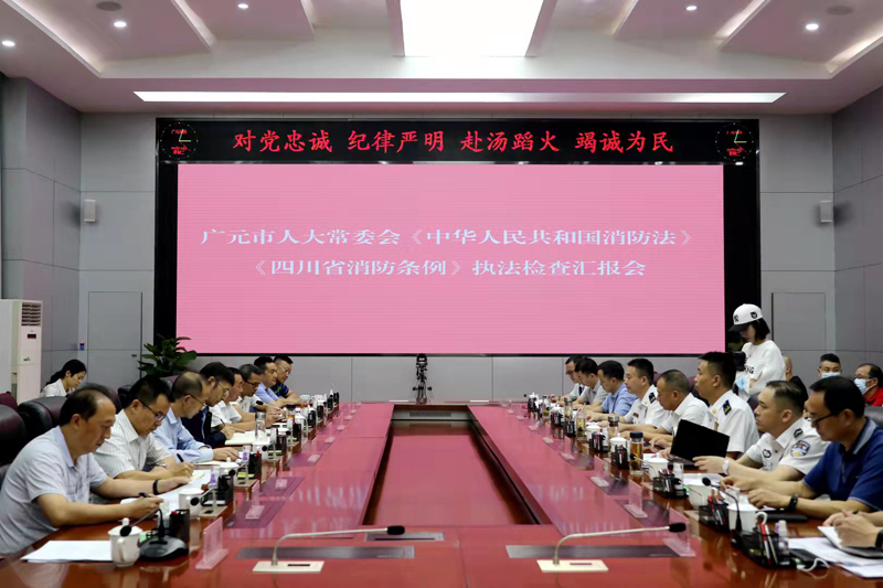 执法检查组一行深入昭化区昭化镇实地检查了政府、部门和基层组织落实消防安全责任制情况、消防规划制定落实情况、公共消防设施建设情况,查看了昭化古城专职消防队伍建设、灭火和应急救援职责履行情况;到万达广场实地检查了社会单位落实消防安全责任制情况、开展消防法律法规和消防安全知识宣传教育和培训情况;到市消防救援支队实地查看了消防指挥中心,检查了消防队伍和消防组织建设及履职情况。并于当天下午召开了执法检查汇报会,市委常委、副市长陈正永和市级相关部门负责人汇报了贯彻实施消防“一法一条例”情况。