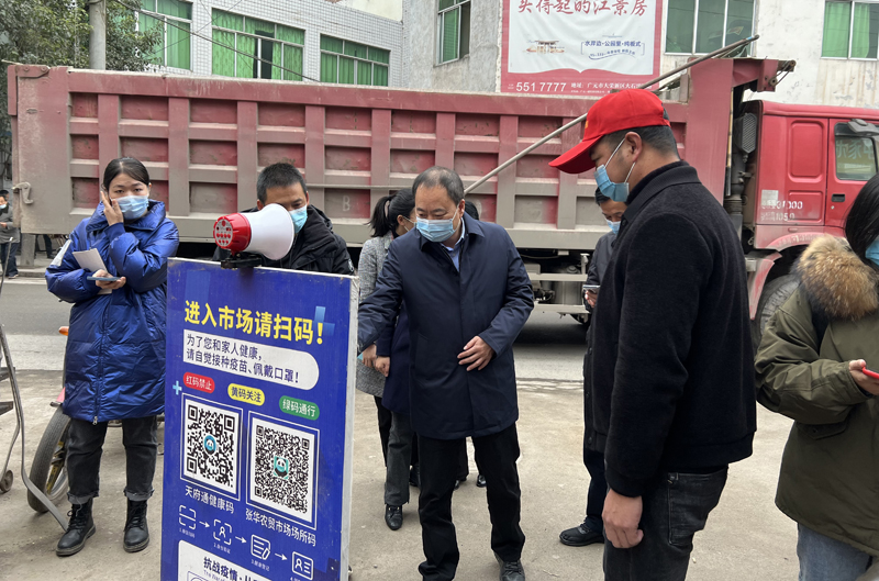 在张华镇农贸市场,盛锦带领督导组重点查看了市场经营主体是否严格落实环境消杀、扫码测温、戴口罩等防控措施落实情况,并详细询问市场供应是否充足、价格是否平稳、货源渠道是否可靠,经营肉类产品的经营者是否按要求索取检验检疫合格证和肉品品质合格证等。盛锦指出,新冠肺炎疫情防控工作是当前头等大事,各类经营主体要进一步增强责任意识,不折不扣落实好防控措施,做好疫情常态化防控工作。