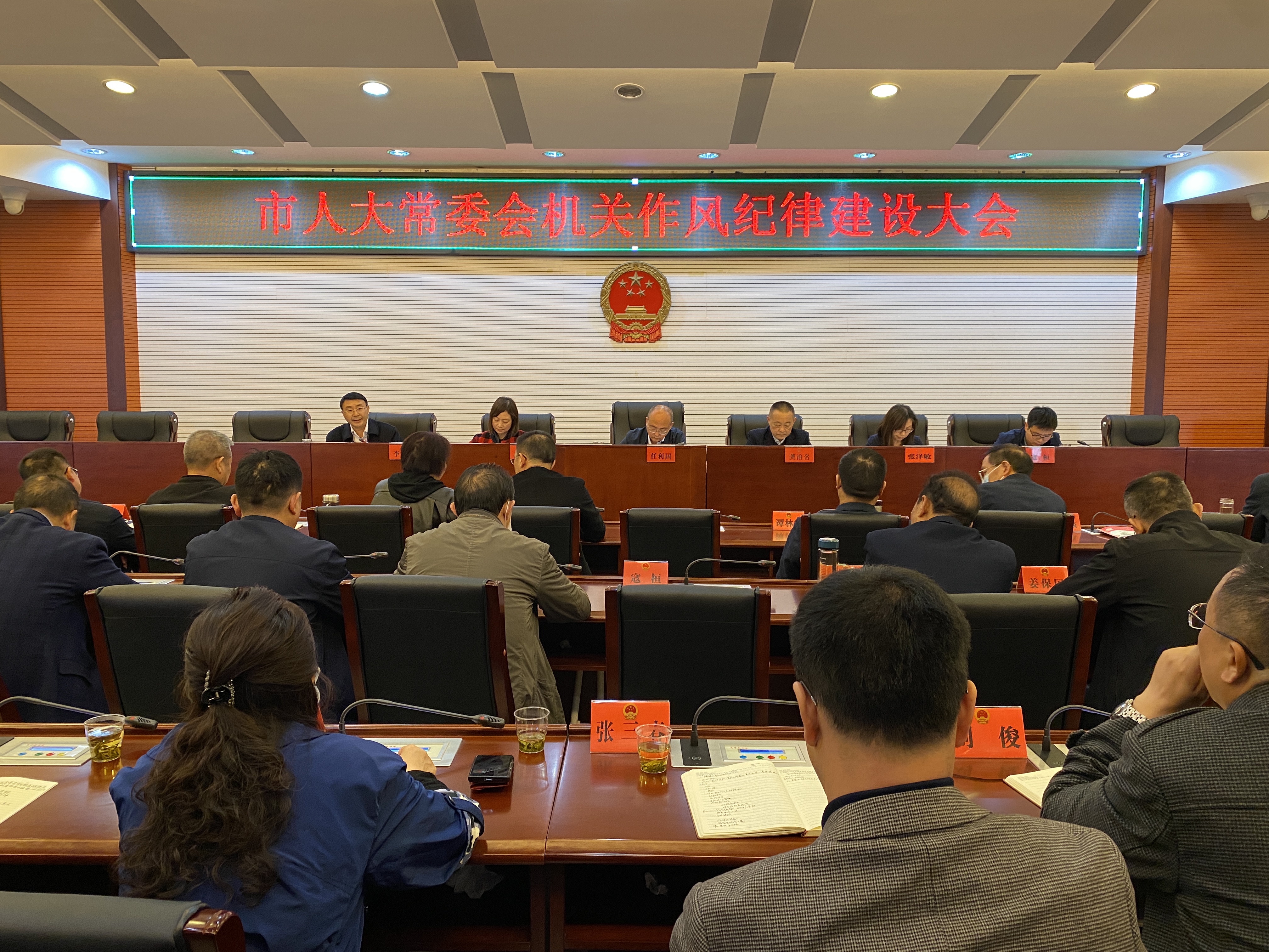 31日,市人大常委会机关召开作风纪律建设大会,秘书长任利国主持会议并讲话。会议传达了十九届中央纪委五次全会、省纪委十一届五次全会、市纪委七届六次全会精神,学习了“两项法规”和市委关于持续深化落实中央八项规定精神进一步纠四风转作风树新风的通知精神,通报了有关违反中央八项规定精神、个人事项报告典型案例。