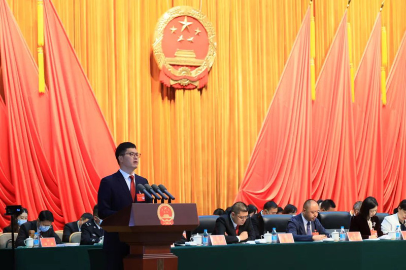 区人民法院院长陈燕向大会报告工作时说,2021年,区法院在区委坚强领导、区人大及其常委会有力监督下,坚持以习近平新时代中国特色社会主义思想为指导,认真贯彻习近平法治思想,全面贯彻落实中央、省委、市委、区委各项决策部署,坚持服务大局、司法为民、公正司法,忠实履行宪法法律赋予的职责,各项工作取得新成效。一年来,受理各类案件13696件,结案13257件,结案率96.8%,审判质效高位运行。