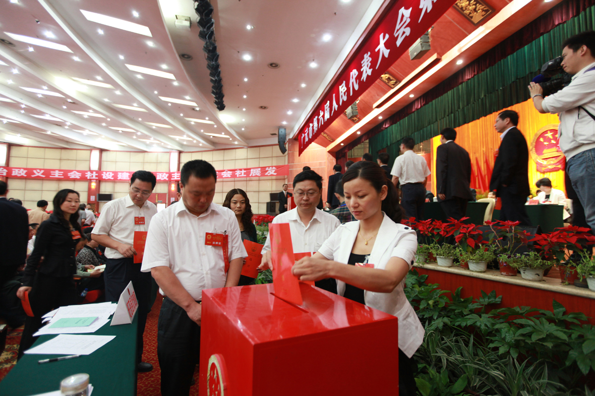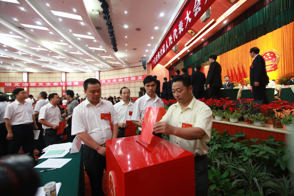代表投票选举市六届人大常委会主任、副主任,