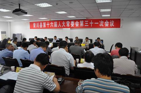 青川县第十六届人大常委会第三十一次会议于2011年8月5日在文化中心三会议室召开。此次会议会期半天,共六项议程。会议由县人大常委会主任向勇主持。出席会议的有县人大常委会副主任苏清海、王显贵、蒙绍全、罗超盛,委员10人。列席会议的有县委常委、常务副县长彭仕扬,县人民法院院长,县人民检察院检察长,县人大常委会副科级以上干部,县人民政府相关部门负责人,2位乡镇人大专职副主席。