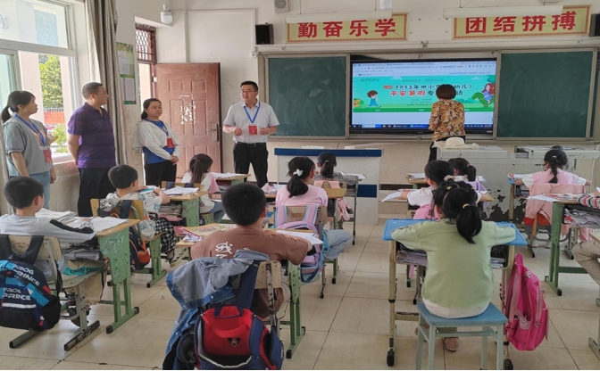 镇人大代表一行先后到柏林沟镇文村小学查看学校食堂食品安全、校园河流隐患排查、学生住宿情况,并对学生开展安全知识培训,发放防溺水知识宣传资料。