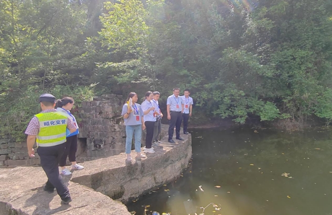 图为镇人大代表排查校园周边河流隐患