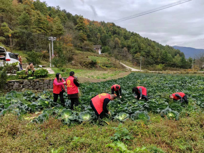 白鹰村今年共种植甘蓝、辣椒、土豆等农产品800余亩,现已进入丰收季,不少农户出现了采摘人手紧缺、销售困难等问题。为解农户燃眉之急,区人大常委会机关组织干部职工开展志愿服务,到田间地头帮助农户采收农副产品。当天共采收农副产品1000余斤,并以略高于市场的价格购买农户土鸡、米珍、莲花白、辣椒等农副产品,共计3000余元。这种“以购代扶”,不仅缓解了农产品采摘、销售难题,增加了收入,还增进了帮扶单位与群众之间的感情。