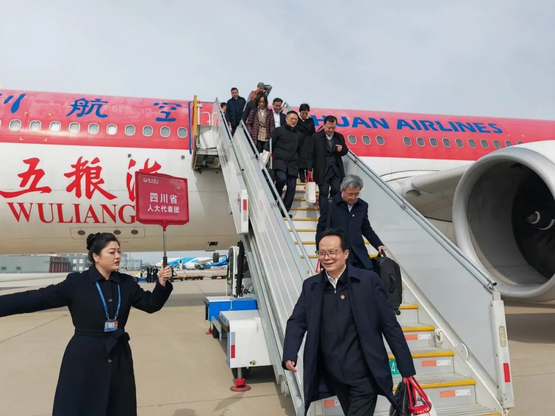 3月3日12时45分许,肩负着全省人民的重托,出席十四届全国人大三次会议的四川代表团代表乘机抵达北京首都国际机场。