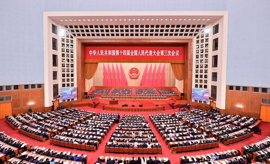 第十四届全国人民代表大会第三次会议5日上午在北京人民大会堂开幕。近3000名全国人大代表肩负人民重托出席大会,履行宪法和法律赋予的神圣职责。