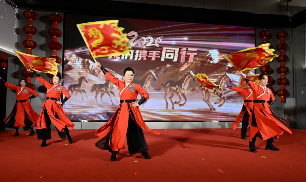 随后的文艺演出在气势磅礴的舞蹈《万马奔腾》中拉开序幕。整场演出紧扣时代主题与人大职责,分为“福启新程·岁启华章”“履职担当·初心如磐”“活力飞扬·风采绽放”“策马奔腾·共赴新途”四个篇章。三句半《夸人大》和小品《你有我也有 共赴振兴路》生动诠释了人大围绕中心、服务基层的担当作为;传统书法剪纸与八段锦表演,展现了人大队伍的文化底蕴与精神风貌;深情的歌曲联唱、充满时代记忆的时装秀以及激昂的诗朗诵,抒发了对光荣岁月的致敬与对祖国的热爱。演出最后,全场齐声高唱《歌唱祖国》,激昂的歌声凝聚起全区人大工作者在党的领导下团结奋进、依法履职,共同谱写利州发展新篇章的坚定信念与豪迈情怀。
